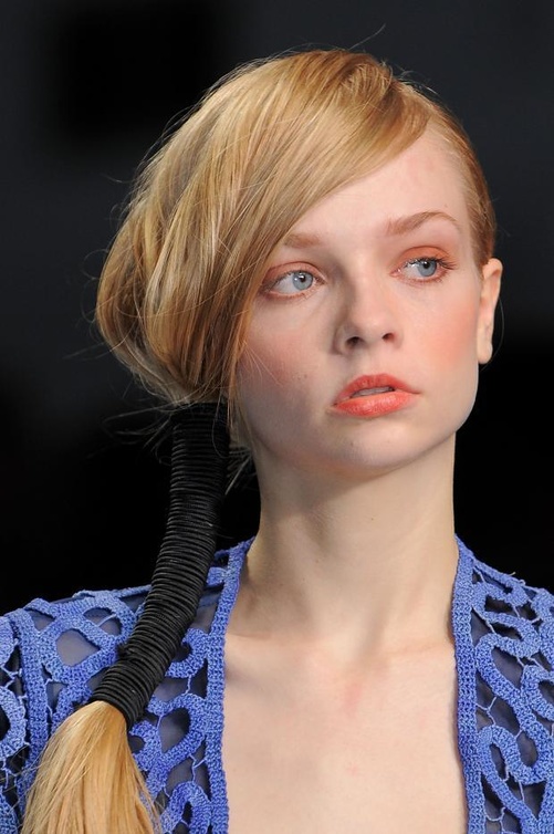 لفتنا خلال متابعنا لعروض الأزياء في لندن العديد من التسريحات الغريبة والمثيرة للجدل، والتي بجمالها وجرأتها أضافت جواً من المرح والتجدّد على العروض. خطفت التسريحة الجانبية والمنخفضة بطريقة "ذيل الحصان"، إهتمام الحضور عند إطلالة عارضات Bora Aksu خصوصاً من خلال تزيينها بالرباط الملفوف على كامل الخصلة، مع الغرة الجانبية التي أضفت لمسة أنثوية مميزة على ملامح العارضات. فتمايلن بالرفعة المنخفضة التي تغطي جزءاً من الوجه، بعكس تسريحاتPaul Costelloe الذي فضّل الرفعة العالية مع ضخامة الشعر المرفوع والمستوحى من موضة الخمسينات والسيتينات، محتفظاً بالغرة الجانبية والمنسدلة بطريقة منظّمة حتى أسفل الخد. أما إطلالة الشينيون المرتفع والمبلّل من دون أية خصل أو غرة كثيفة ومنسدلة، فطبعت هويّة عرض Preen by Thornton Bregazzi.