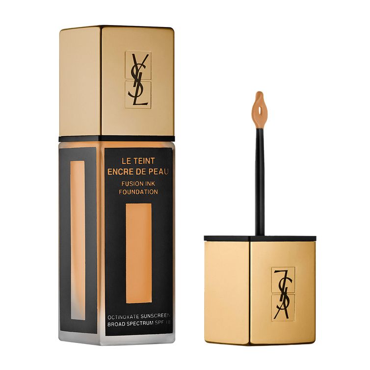بداية، ضعي طبقة من كريم الأساس السائل"ايف سان لوران فيوجن إنك فاوندايشن" YSL Fusion Ink Foundation على بشرتك الكاملة، وطبّقي خافي العيوب "ايف سان لوران توش إكلا" YSL Touche Eclat حول عينيك لإخفاء الهالات السوداء والبثور والعيوب الفاضحة.