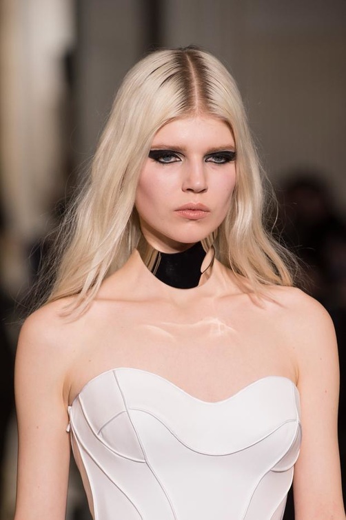 يطلّ الآيلاينر النيلي ليجعل الماكياج أكثر رومانسية وجمالاً، خصوصاً إذا وضعت هذا اللون على الجفن العلوي للعين ممزوجاً مع الجفة السفلي مثل عارضات Versace. فاختاري أيتها المرأة قلم "مارك جايكوبز بيوتي ذو سكاي لاينر سافن بيسز"Marc Jacobs Beauty The Sky-Liner Seven Piece Petite Highliner Collection ومرّريه على كامل الجفن العلوي. أو إحرصي على تحديد الطبقة العلوية من عينيك بخط رفيع من "شانيل ديلايتز لو كرايون زيو بريسيجن آي ديفاينر" Chanel Delights Le Crayon Yeux Precision Eye Definer. ولإبراز الآيلاينر الأسود الجريء والعريض الذي يغنيكي عن تطبيق الظلال أسوة بعارضات Versace وElie Saab، استعيني باللون الأسود من "ماك أكس روكي هورور غريسيباينت ستيك" MAC x Rocky Horror Greasepaint Stick أو "استي لودر دوبل ستاي إن بلايس آي بانسيل" Estee Lauder Double Wear Stay In Place Eye Pencil لتزيدي إشراقة عينيك وبريقها، ولتظهري بعيون مضيئة ومشعّة لطلّة واثقة وأسلوب مثالي في رسم الموضة المنتظرة.