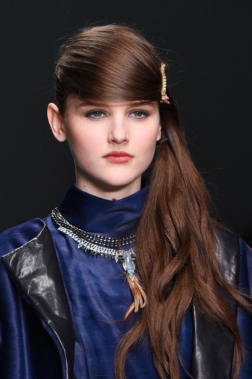 بالرغم من سيطرة موضة التسريحات المتعدّدة على عروض الأزياء في لندن، لم تشأ أبرز الدور العالمية التخلّي عن الغرّة الجانبية مهما كانت نوع التسريحة المطروحة. فرسمتBora Aksu أجمل صيحات الشعر والتسريحات الراقية التي تليق بكل سيدة أنيقة وعاشقة التغيير. ولعل أبرز ما لفت نظرنا في متابعتنا العرض، هو ظهور الغرّة الجانبية الطويلة التي تغطي جزءًا كبيراً من الوجه، مع تسريحة الشعر الجانبية التي تنسدل على كتفٍ واحدٍ من أكتاف المرأة، مصحوبة بالأكسسوارات البرّاقة التي تفصل بين الغرّة والشعر.
