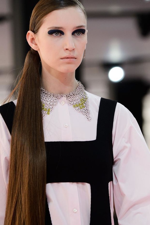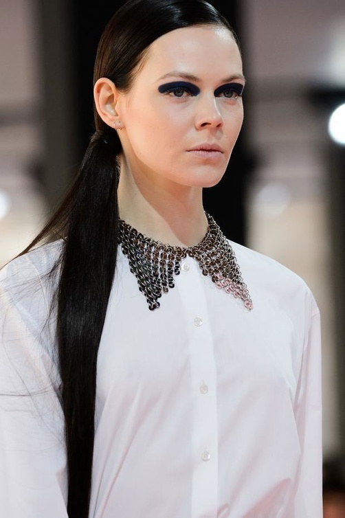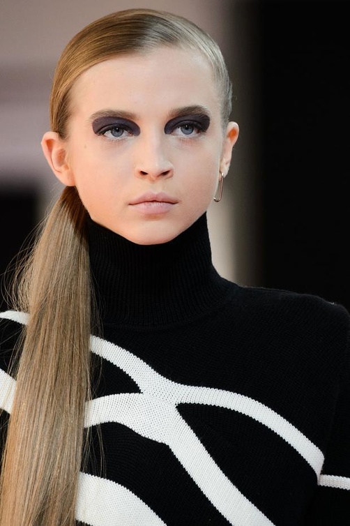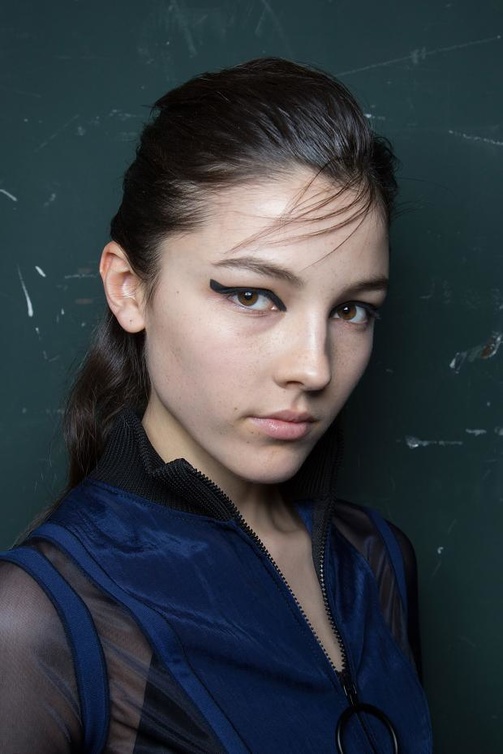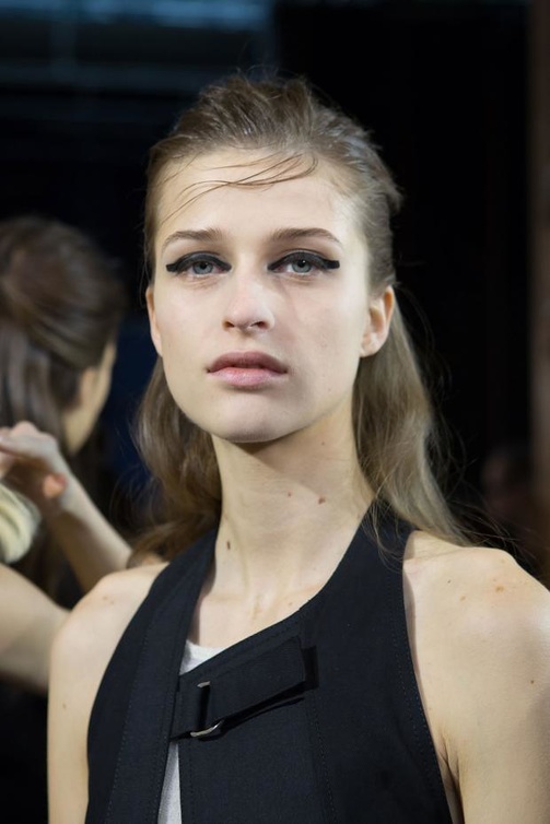 لم تتردّد دار Christian Dior بجعل العيون محطّ أنظار الجميع. فهي بجرأتها وجاذبيتها المغمورة بين أناقة الأسود ورونق النيلي المتألق على عيون العارضات، رسمت أناقة إستثنائية من خلال جرأة الآيلاينر الكثيف الذي يغطّي الجفون العليا للعين، وصولاً الى حدود الحاجبين، مع ما شاهدناه من توحيد تام لبشرة الوجه، والحفاظ على الشفاه الطبيعية. فالتركيز اقتصر على جعل العيون استثنائية وعصرية. ولا يمكن تجاهل جمال عارضات Paco Rabanne الذي سار على خطواتChristian Dior بجعل الآيلاينر العريض والأسود سيد الجمال الأول على أوجع العارضات، من خلال تمريره على كامل الجفن العلوي مع مدّه الى خارج العين. على عكس عرض Elie Saab الذي فضّل أن تكون العيون مزيجاً متناغماً بين الجفون العليا والسفلى، من خلال تمرير الظلال الداكنة على الجفون العليا، مع الآيلاينر الرفيع الذي زيّن الجفون السفلى للعين، ومدّه الى الخارج بطريقة مفتوحة ومجنّحة.