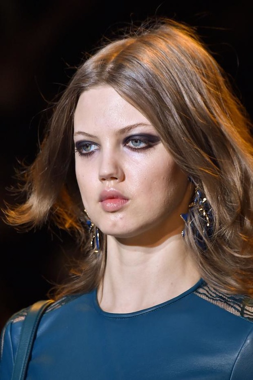 مع ما شاهدناه من سيطرة مميّزة لموضة الشعر المنسدل على عروض Nina Ricci، بدا واضحاً إبداع هذه الدار برسم موضة المكياج الناعم الذي يسيطر عليه كثافة الماسكارا البارزة، مع الظلال الذهبية المشرقة التي تجعل العيون شبابية ومليئة بالرومانسية. أما Barbara Bui فأظهرت ملامح المكياج الطبيعي والناعم مع الآيلاينر الرفيع على الجفن العلوي للعين، مع تمرير هذا الآيلاينر الأسود الرفيع على الجفن السفلي للعين من الجهة الخارجية للملامح، ومصحوباً بتطبيق الخدود البرونزية التي تضيء وجهك وتعزّز أناقتك.