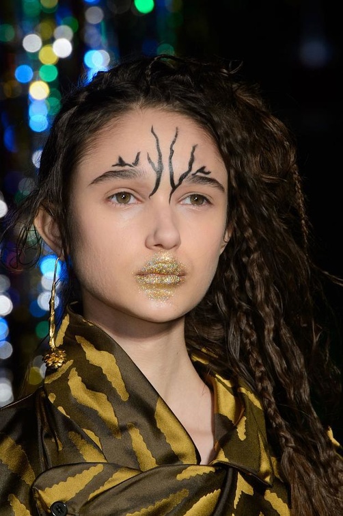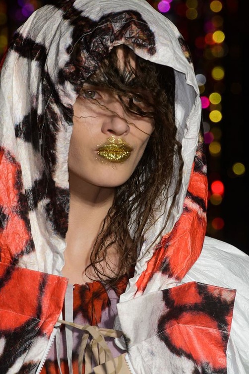 في النهاية لا يمكننا إلا أن نثني على رقي عارضات Vivienne Westwood التي تجرّأت وغمرت شفاه عارضاتها بالذهبي البرّاق والعصري، بالرغم من حرصه على إطلالة العارضات ببشرة موحّدة وخالية من المستحضرات القوية.