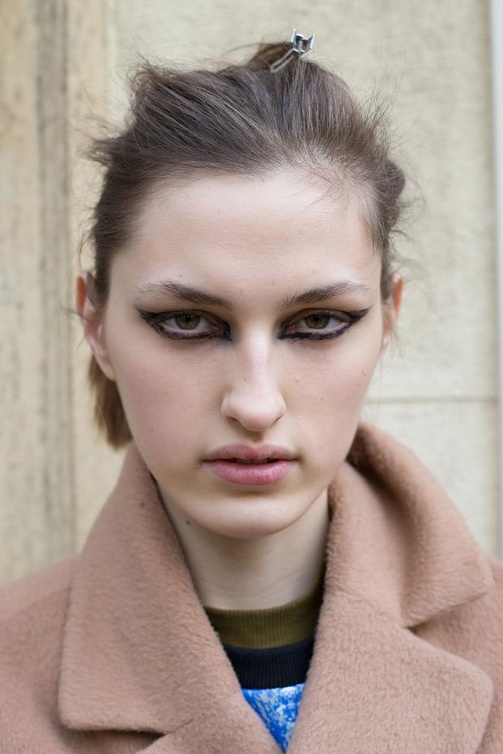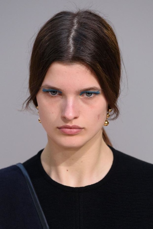 وتخطّت عارضات Celineالمألوف من خلال إطلالاتهن بالايلاينر الأزرق غير المنتظم الذي جعل هذا العرض الباريسي جريء بالآيلاينر الغريب الذي يناسب جيل الشباب. وكوني جريئة ولا تتردّدي بتجربة غرابة الآيلاينر البعيد كل البعد عن الكثافة من خلال تمشيح الخطوط من الجهتين السفلية والعليا مثل Veronique Leroy، ليبرز عيونك وليطبع آيلاينر جذاب وأسلوب مثالي لطلّة جديدة عند زاوية العين الداخلية وجذور الرموش السفلى.