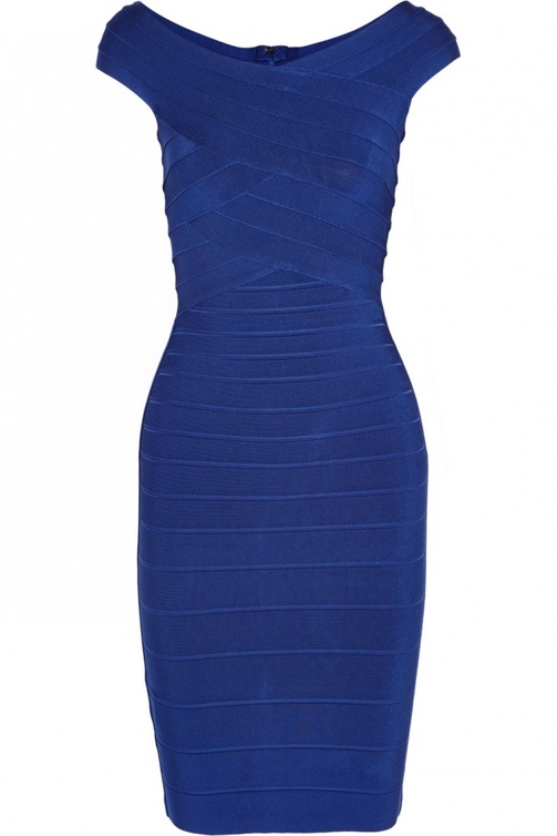الإطلالة الثانية: شبابية وألوانها منعشة عبارة عن فستان باللون النيلي من Herve Leger بقصى ضيقة، وقد اخترنا معه حذاءً فضياً بإحساس معدني من Gianvito Rossi، وأدخلنا االون الأخضر بطريقة مميزة في الأقراط الناعمة من Dior، والحقيبة الجلدية الأنيقة من Bulgari، ولزينة الرأي اخترنا قبعة زينها قماش التول من Piers Atkinson.
