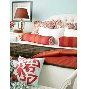 - إذا كانت غرفة نومك ذات ألوان محايدة ، فيمكنك إضافة الإشراق والحيوية لها ، عن طريق إضافة بعض الوسائد الصغيرة المنقوشة ، على أن تكون بألوان مبهجة كالأحمر .