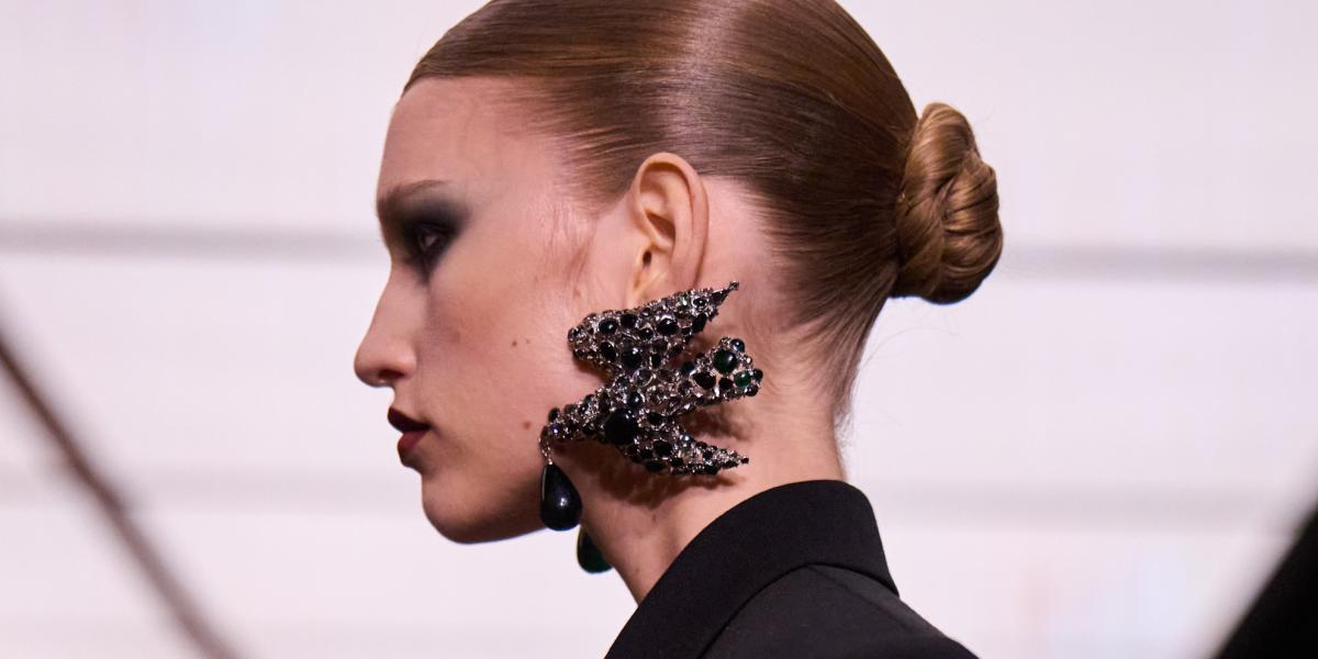ولا غنى في اطلالاتك المقبلة عن صيحة اكسسوارات اللفات الذهبية والبارزة أسفل الشعر الكيرلي الطويل مع الضفائر الرفيعة والهندسية. انتقي هذه القطع التي تضمن لك اطلالات ساحرة وملفتة والأهم عدم اخفاء الخصل الشبابية والطويلة بأسلوب دار Chloe.