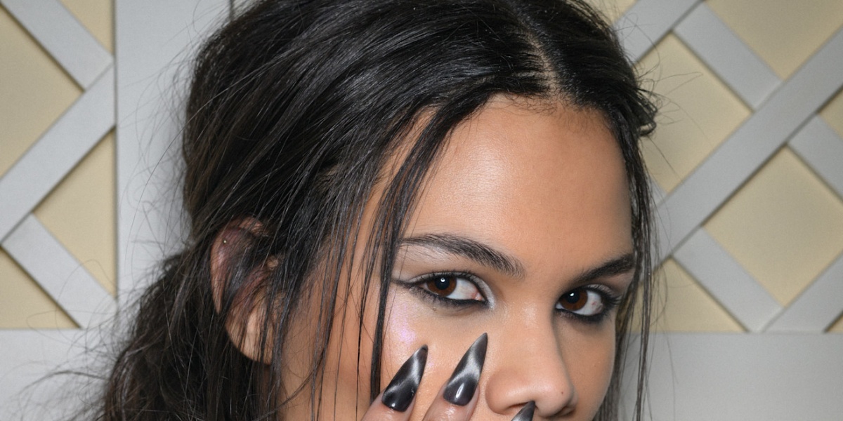 وتبرز في اطلالاتك المقبلة أجمل ألوان الاظافر الخريفية والبارزة بتدرجات فضية ومدموجة مع النقشات الحيوية الفاخرة. فانتقي صيحة اللون الفضي الفاتح بشكل ساحر من وحي دار Kim Shui وقومي بتمريرها مع التدرجات السوداء على الاظافر الطويلة والمربعة. وعلى الاظافر الأخرى، ضعي الخطوط الهندسية النافرة والنقشات الفاتحة التي تضمن لك اطلالة جمالية ملفتة ومناسبة لكافة الوان البشرة.