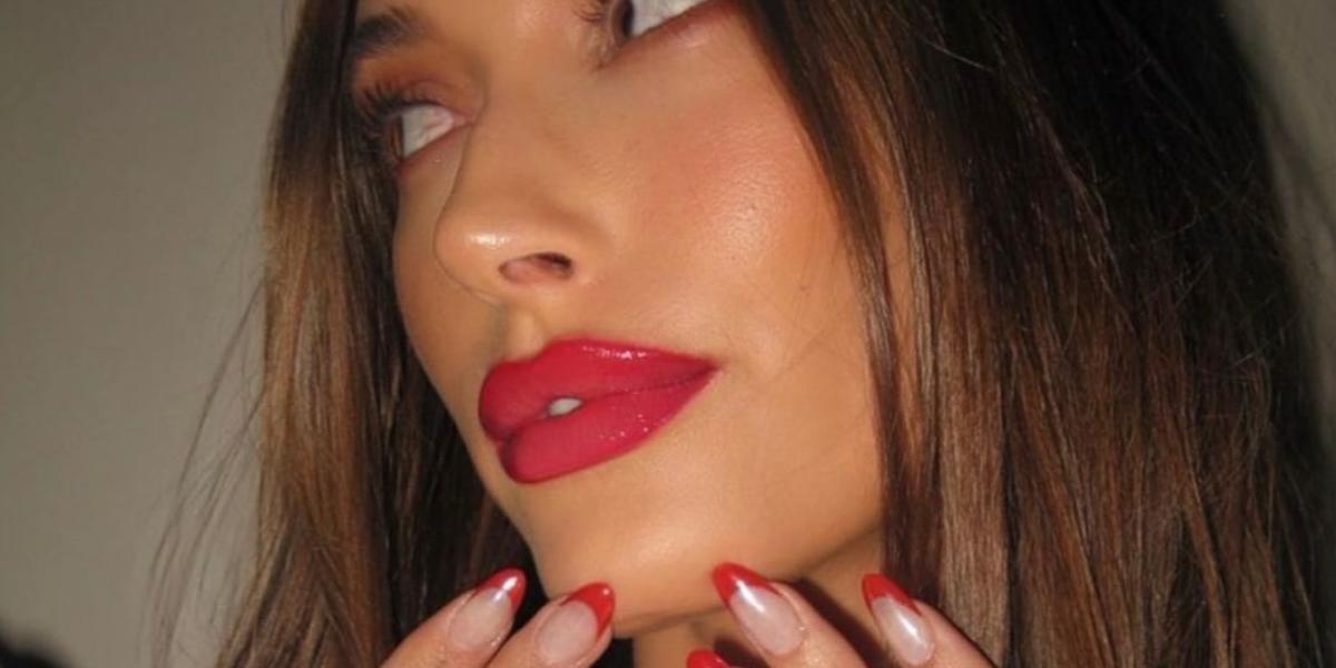 أظافر حمراء وفاتحة بأسلوب الفرانش من وحي Hailey Bieber