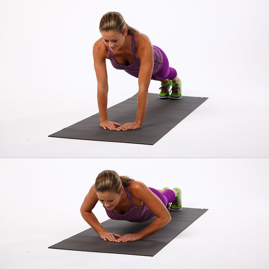 -من أكثر التمارين إنتشارا الPush-Up أو تمرين الضغط. إستلقي على الأرض وإرفعي نفسك مستخدمة يديك، على أن تكون متباعدتين بنفس مساحة الكتفين وأن تكوني مرتكزة على أصابع القدمين. إذا وجدت صعوبة في الحفاظ على الوضعية، ضعي واحدة أو كلتي الركبتين على الارض. حافظي وشدّي منطقة المعدة عندما تقومين بثني مرفقيك الى الجانبين، وإخفضي جسمك نحو الأرض. حافظي أيضا على خط مستقيم للجسم وتجنبيّ رفع الوركين أو الظهر. بعد النزول تدريجيا، إرفعي نفسك صعودا تدريجيا أيضا وكررّي لجولات عدة هذه العملية.