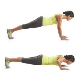 ضعي يديك على الأرض ولا تتركي مسافة كبيرة بينهما من عرض الكتف، حافظي على استقامة جسمك من القدمين حتى الرأس، ثم قومي بالإنخفاض ببطء صوب الأرض بصدرك، وانهضي مرة أخرى بحركة طفيفة معتمدة على ذراعيك.