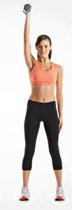 أرجعي مؤخرتك كلياً الى الخلف كي تستطيعي أن تنخفضي بشكلٍ أسهل. إمكسي طرف الكرسي بيد وباليد الثانية إحملي وزناً خفيفاً. إنخفضي كلياً صوب الأرض وافتحي قدميك قليلاً ثم عودي مجدداً الى وقفتك المستقيمة وارفعي ومدّي يدك مع الوزن كأنك تقومين بتوجيه ضربة في الهواء. كرّري التمرين 30 مرة لكل جهة.