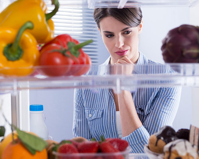 -لا تلجأي الى الإمتناع الصارم عن تناول الطعام، لأن ذلك سيؤدي الى خلق رغبة متزايدة في تناوله. إعملي على تنظيم الوجبات ومواعيدها والتخطيط لها لكي تحققي التوازن وتؤمني جميع العناصر الغذائية باعتدال.