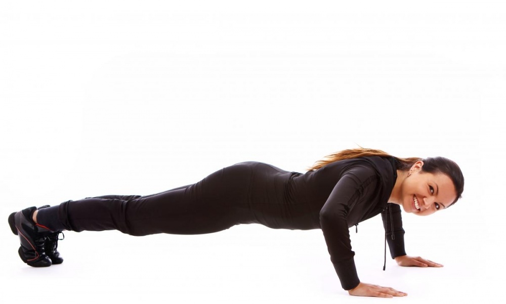 إرفعي الجسم بشكلٍ كامل الى الأعلى وموازٍ للأرض ثم انخفضي ببطء تجاه الأرض. حافظي على استقامة الظهر والساقين وكرّري التمرين 12 الى 15 مرة.