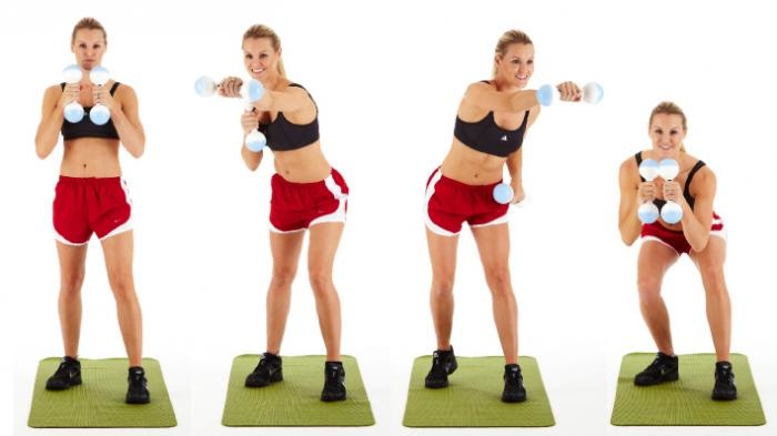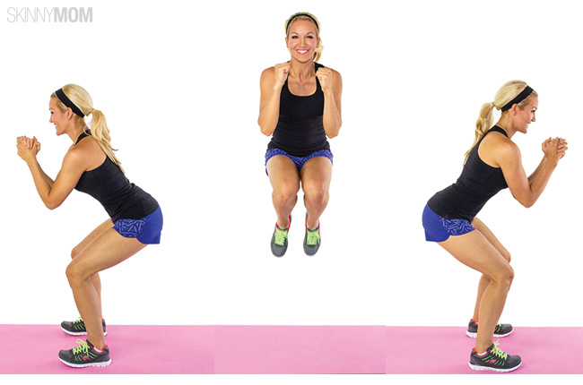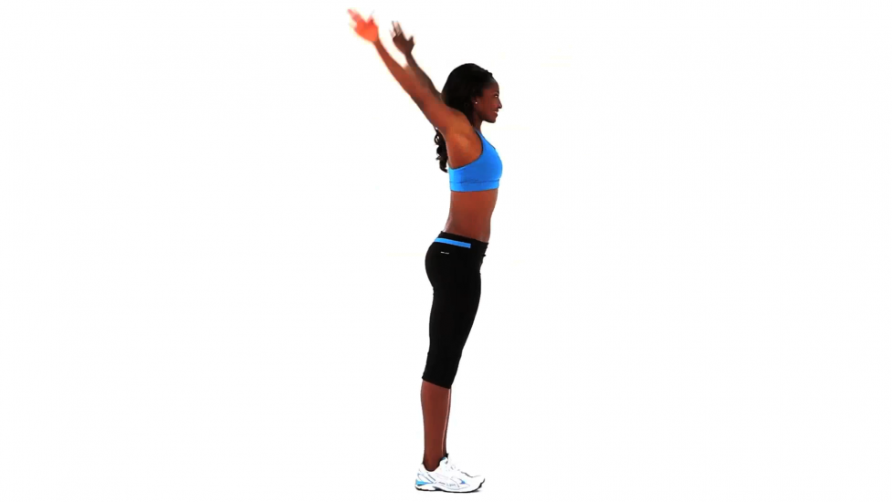 إقفزي بكل قوتك عبر أصابع قدميك وحافظي على الساقين مضمومتين وحرّكي ذراعيك كأنك تحملين الحبلة بين يديك.