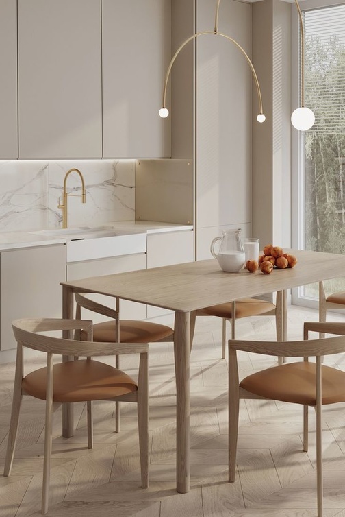 يتم الجمع بين اللون البني الداكن والظلال الترابية لإنشاء غرفة طعام أنيقة وبسيطة بأسلوب ال minimalist.