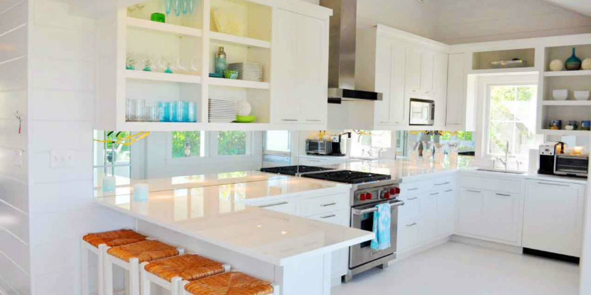 يمكن احداث تاثير دراماتيكي على ديكور المطبخ باختيار لون مغاير عن السائد في مطبخك بلمسات لونية او زخارف جميلة على كراسي المطبخ.