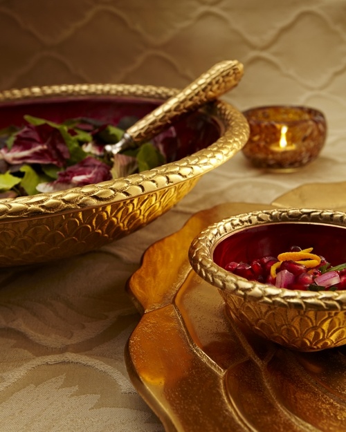 3-أطباق ذهبية لتقديم السلطات والمقبلات من بلومينغديلز.