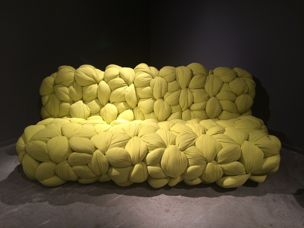 أما الألوان المستخدمة لصنع هذه الصوفا المميزة فتقول عنها لطيفة: "يوجد خيارات منوعة للألوان المستخدمة في صنع الصوفا مثل الأصفر الفاقع المعروض أمامنا والرمادي والأبيض والأسود وقد اخترنا هذه الألوان بالذات لكي تظهر بانسجام مع بعضها ولكن يمكن بالطبع عمل ألوان أخرى حسب طلب العميل". تضيف أخيراً: "يتم عمل التصميم حسب الحجم والارتفاع واللون الذي يناسب العميل عبر التواصل مع "تشكيل" غاليري كما يمكنه أن يزور الورشة ليشاهد كيفية صنع القطعة بحيث يكون جزءاً من العملية بأسرها".