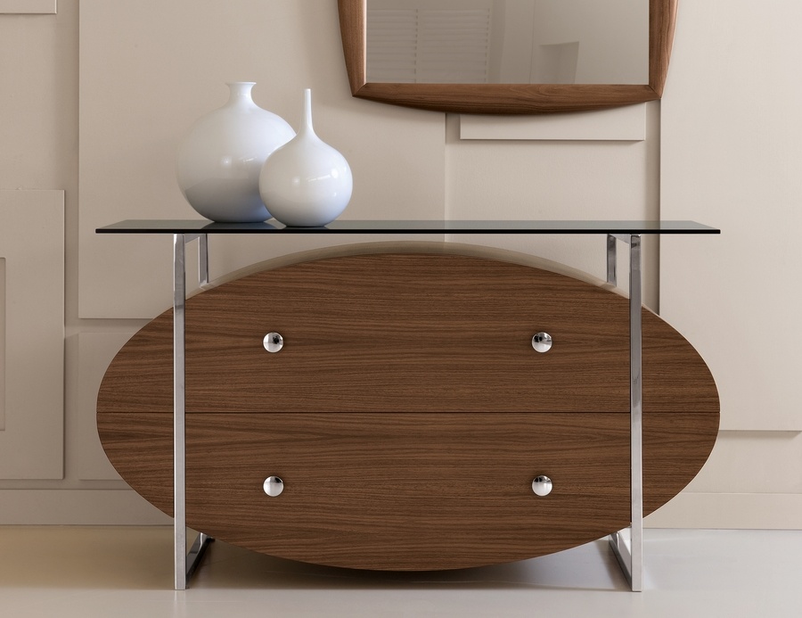 وأخيراً إخترنا طاولة مصنوعة من سطح زجاجي وأدراج من الخشب البني من L'Officina.