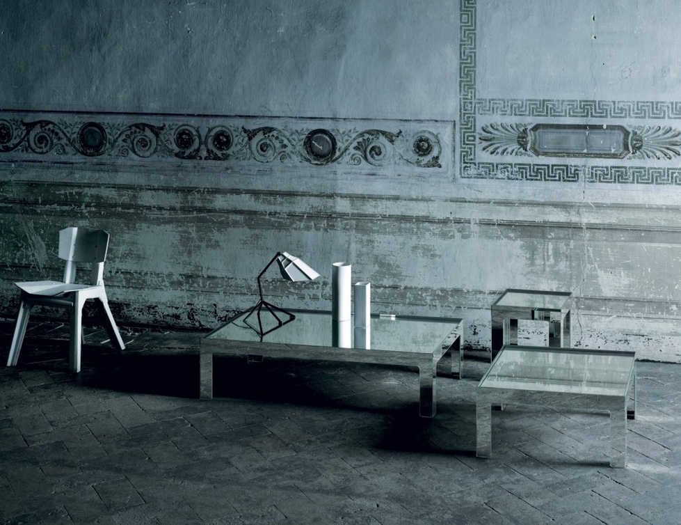 وهناك أيضاً طاولة قهوة Mirror Mirror الزجاجية المصممة بأحجام مختلفة من Glas Italia.