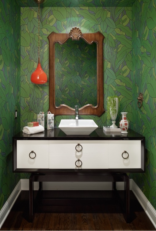 ويمكن إضافة لمسات الأخضر ليس فقط عبر الجدران بالدهان أو الورق؛ بل يمكن توظيفه بشكل جميل  أيضاً عن طريق اختيارالوسائد الأنيقة والكراسي ذات الأقمشة الفاخرة و كذلك الستائر. كما أن هذا اللون يبدو رائعاً على الأباجورات أو الإضاءة الجانبية سواء كان ظاهراً في قاعدتها أو غطائها.