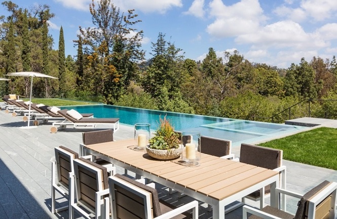 وبالطبع لا يمكن أن يخلو منزل كهذا من عناصر الترفيه الفارهة مثل مسبح خارجي رائعمع جلسات أنيقة للاستمتاع بشمس كاليفورنيا الدافئة وكذلك ملعب تنس مميز تحيط به الأشجار الخضراء الجميلة.