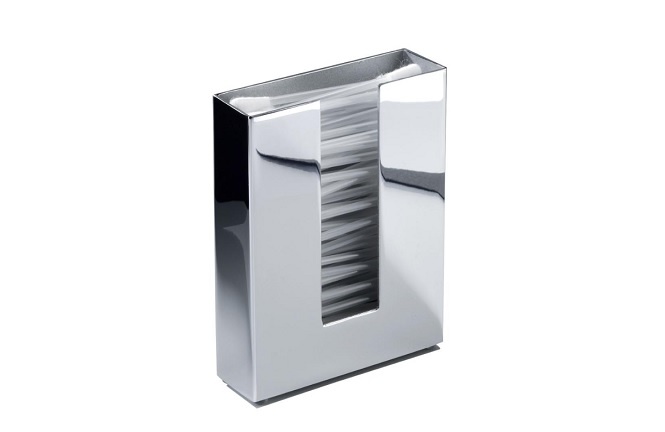 اخترنا لكم من Décor Walther تصميمين لحمل المناشف أحدهما عبارة عن سلة أنيقة من الكروم بلونه الفضي اللامع؛ أما خيارنا الآخر فهو على شكل حامل أنيق من الكروم أيضاً يتم تثبيته على الجدار لصف المناشف عليه بطريقة عامودية وهو تصميم عملي يناسب المساحات المحدودة.