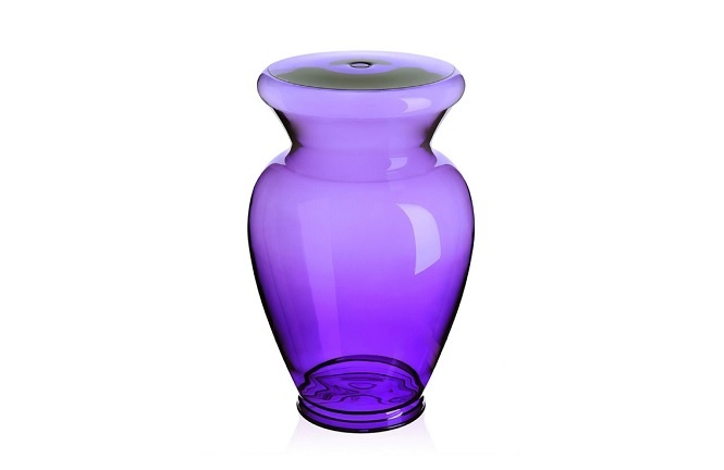 كما اخترنا لكم أيضاً مقعداً صغيراً باللون البنفسجي الجميل من تصميم Kartell من مجموعة La Boheme مصنوع من الزجاج السميك و متوفر بألوان مبهجة أخرة مثل الأصفر والأحمر والأخضر. وهو أشبه بإناء كريستالي تقليدي صممه المبدع فيليب ستارك Philippe Starck.