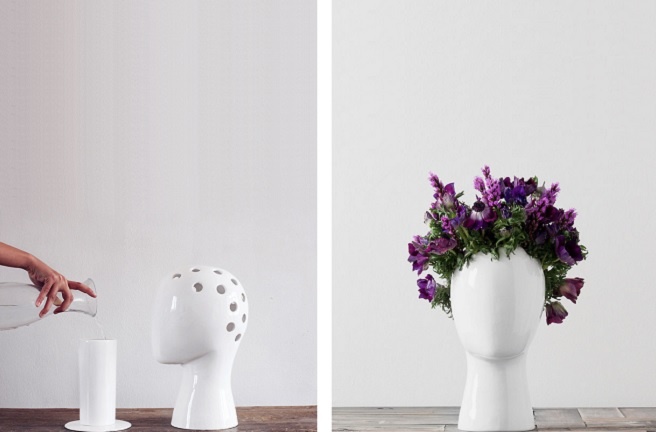 اخترنا لكم إناء مبتكراً للزهور من البورسلان على شكل رأس مانيكان أششبه بتلك المستخدمة في متاجر الإكسسوارات أو لعرض الشعر المستعار.. هو تصميم مميز بالفعل يعرض الزهور بشكل مختلف عن الطابع الكلاسيكي من تصميم Tania da Cruz.