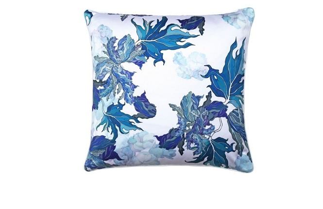 وأخيراً نعرض لكم وسادة رائعة بدرجات من اللون الأزرق النيلي من تصميم Meng وهي مصنوعة من قماش الساتان الناعم.