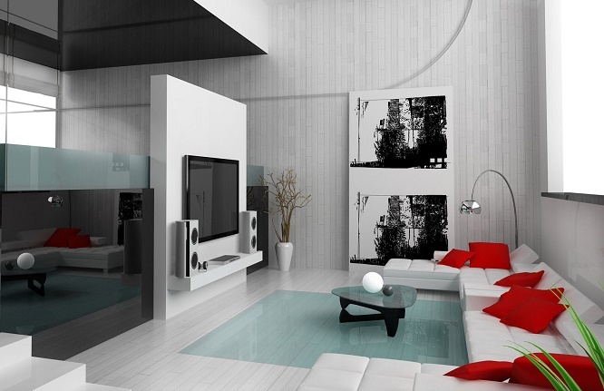 لم يعد ديكور منزلك محصوراً باللونين الأبيض والأسود، بل يليق بهذا الديكور العصري حرية إدخال الألوان المشعّة والتي يمكن تنسيقها مع بقية الأكسسوارات. يشكّل اللون الأحمر رونقاً متناغماً مع الأبيض والأسود، خصوصاً من ناحية السجاد المفروش بطريقة مميّزة، والوسائد المضلّعة بين الأحمر والأسود، لإضفاء المزيد من الجمال على أثاث المنزل.