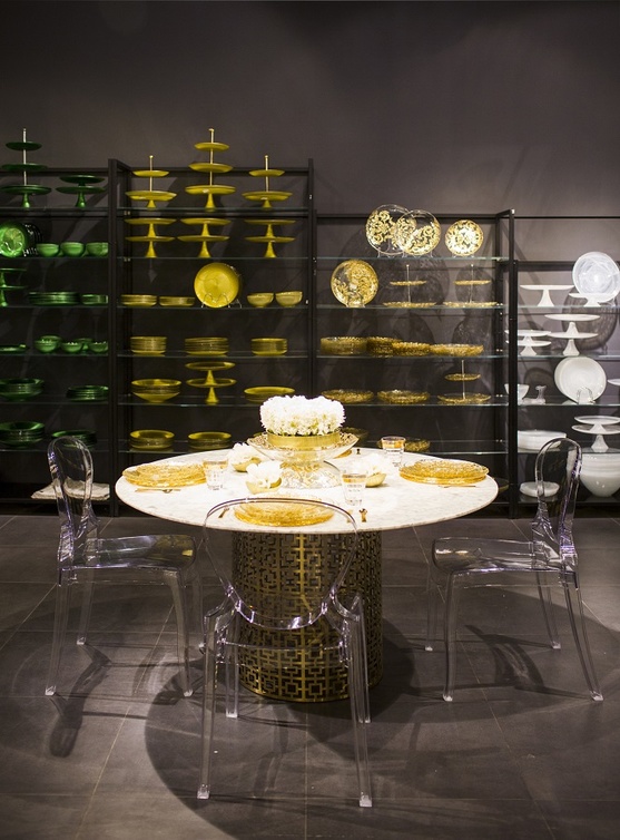 المجموعة المواكبة لأحدث الصيحات: تتميز هذا الموسم بمجموعة ألوان غنية، تجمع بين الذهبي والكحلي والأخضر الزمردي. وهي مجموعة مفعمة بالحيوية ومطعمة بقطع ذهبية. وبالإضافة إلى ذلك، فقد صُممت الأقمشة الداكنة والإكسسوارات ذات الألوان المحايدة لتجذب العين من خلال تركيبات الألوان الكمالية التي تنعكس في تشكيلة أدوات المائدة.