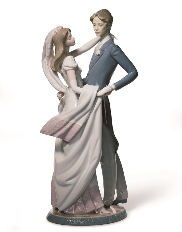 اخترنا لكم مثلاً تمثالاً رائعاً من السيراميك الفاخر المنحوت يدوياً من علامة LIadro العريقة يظهر عروسين يرقصان على أنغام رومانسية في حفل زفافهما. كما اخترنا لكم أيضاً صحناً من الكريستال الثمين على شكل قلب أحمر من Lalique.