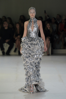 لقد ألهم البحر ومخلوقاته الرائعة العديد من المصممين هذا الموسم . ففي حين كسا كارل لاجيرفيلد نماذجه باللؤلؤ والألوان المائية لشانيل ، اتخذت سارة برتون من ألكساندر مكوين نهجًا أكثر شجاعة ، بإلباس عارضاتها فساتين مستوحاة من قشر السمك ، وغطت وجوههن بشبكة . لقد اخترنا هذا الموديل من رامب ، وسنريكِ كيف توظفينه بغرفتك . فستان من ألكساندر مكوين مجموعة ربيع / صيف 2012 وسادة من ألتامودا – إيطاليا إكسسوار من بتوسي سيرماتشه إكسسوار من بتوسي سيرماتشه