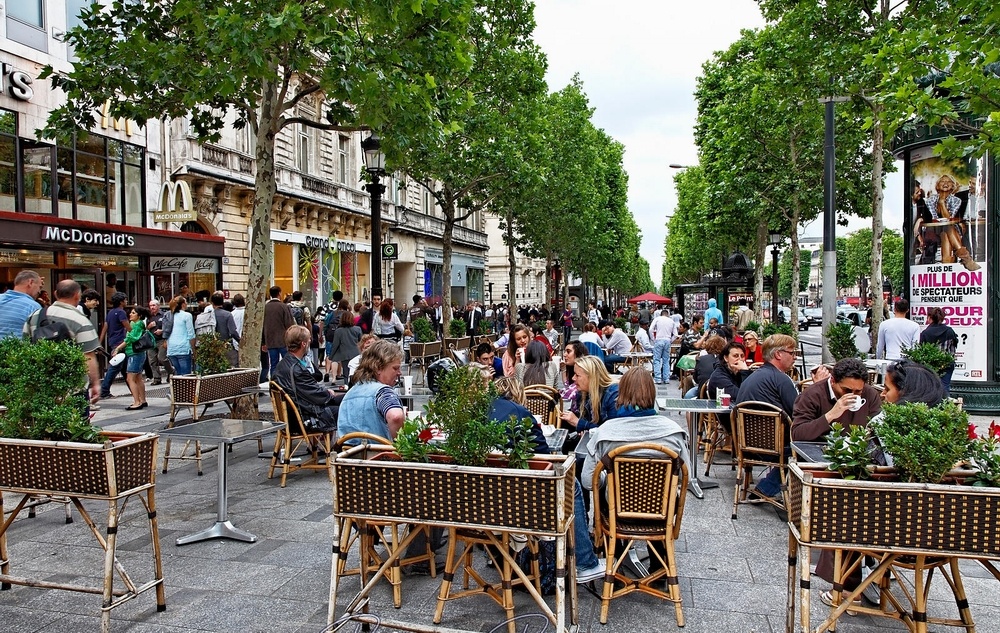 ويعد الشانزلزيه من أهم شوارع أوروبا التجارية وأهم شارع للتسوق في فرنسا ويتميز بالمقاهي الراقية التي تتواجد على ضفتيه جنباً الى جنب مع البوتيكات ومتاجر العلامات الشهيرة بالاضافة الى دور السينما والمراكز الفنية.
