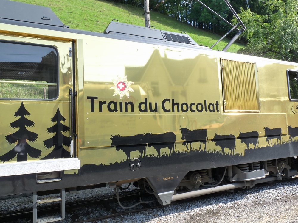 يمكنكم الاستمتاع بركوب قطار الشوكولاتة في سويسرا عند ذهابك إلى هناك سيسلك طريق مونترو إلى بروك والتي تستغرق 9 ساعات و45 دقيقة ذهابا وإيابا، هذا القطار الساحر يعمل على التوالي في الصيف والخريف الذي يصعد من مونترو التي تطل على بحيرة جينيف إلى مدينة العصور الوسطى جرويياريس موطن الجبن الشهيرة التي تحمل نفس إسمها حيث يمكنك التمتع بالتجول في مصنع الجبن والقلعة المحلية.
