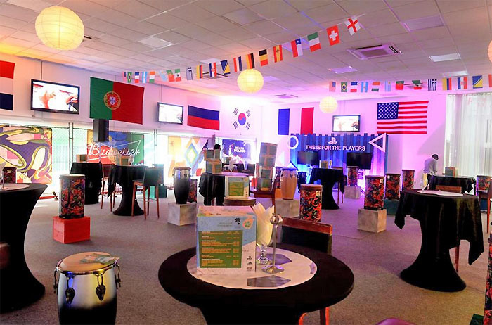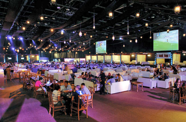 في قاعة الشيخ سعيد في مركز دبي التجاري العالمي والتي تتسع لأكثر من 1000 شخص، نصبت أكثر من 10 شاشات لتلبي الطلب على مشاهدة البطولة الكروية الكبرى في أجواء ملئية بالإثارة والحماس.