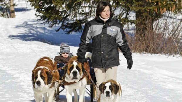 جولة في الثلوج بصحبة أفضل سلالات الكلاب من نوع سانت برنارد: