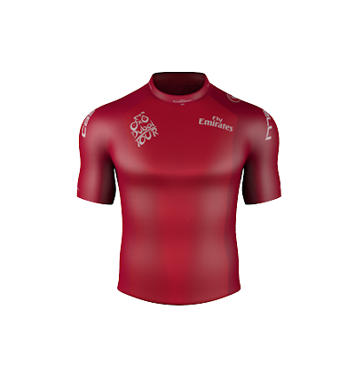القميص الأحمر الذي يحمل شعار طيران الإمارات ويرمز للقوة سيكون من نصيب الدراج الذي يفوز بمرحلة السرعة في كل جولة، وحصل عليه في العام الماضي الايطالي مارسيل كاتيل الذي أحرز لقب السرعة في ثلاث من مراحل الطواف الأربع.