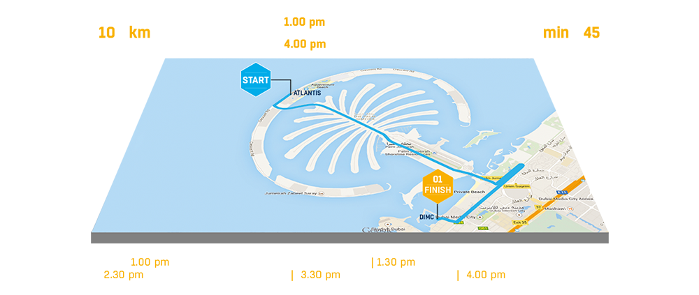 تحمل المرحلة الأولى التي تنطلق اليوم الساعة 11:30 صباحاً باسم مرحلة "وستن دبي" ويقطع خلالها الدراجون مسافة 145 كيلو متراً، ابتداء من نادي دبي الدولي للرياضات البحرية ومروراً بشارع الصفوح وشارع الشيخ زايد، وشارع الأصايل وصولاً إلى خط النهاية عند علم الدولة في بيت الاتحاد بمنطقة جميرا.