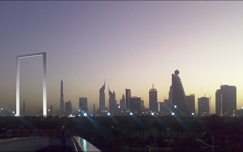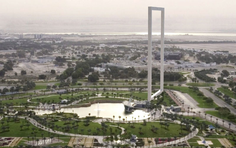 وهو عبارة عن إطار متكامل زجاجي وشفاف، يبرز معالم الإمارة ويؤطرها بشكل فريد، وتكون هيئته على شكل برواز بأربع جهات متساوية القياس، بحيث يبلغ ارتفاع الضلعين 150 متراً، وبعرض 93 متراً ليشكل الفراغ القائم بين الضلعين صورة جميلة لمدينة دبي واضحة المعالم ومن علو شاهق، بحيث ينقل من جهة: معالم ومباني شارع الشيخ زايد، لترمز إلى مدينة دبي الحديثة، فيما تبين الجهة الثانية من البرواز معالم لمناطق ديرة، وبر دبي، والتي ترمز إلى دبي القديمة.