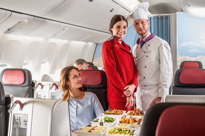 يضيف خبراء الطبخ في درجة رجال الأعمال لمسات رائعة، ويقدّمون لوائح الطعام لذيذة من DO & CO قبل الإقلاع، وفي داخل الطائرة. كما يمكن للمسافرين أن يتكلمّوا شخصياً إلى خبير الطبخ في الطائرة عمّا يفضلونه، وأن يتحدثوا إليه عن المكوّنات وطريقة التحضير.