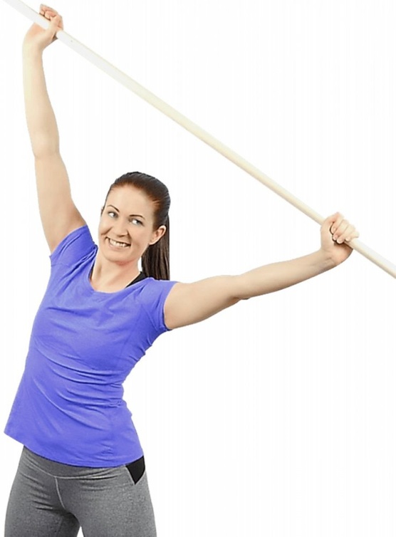 هذا التمرين يتطلب منك عزيزتي العروس احضار العصا، والوقوف باستقامة. امسكي العصا بيديك فوق كتفيك، ثم انحني مرة الى جهة اليمين واخرى الى جهة اليسار. مارسي هذا التمرين 20 مرة لكل جهة يوميا لتحصلي على نتائج فعالة.