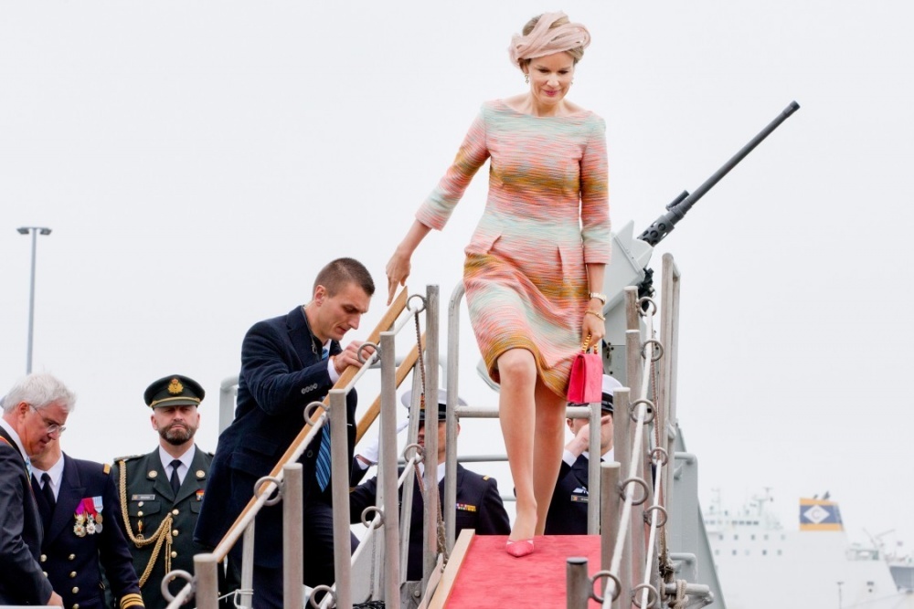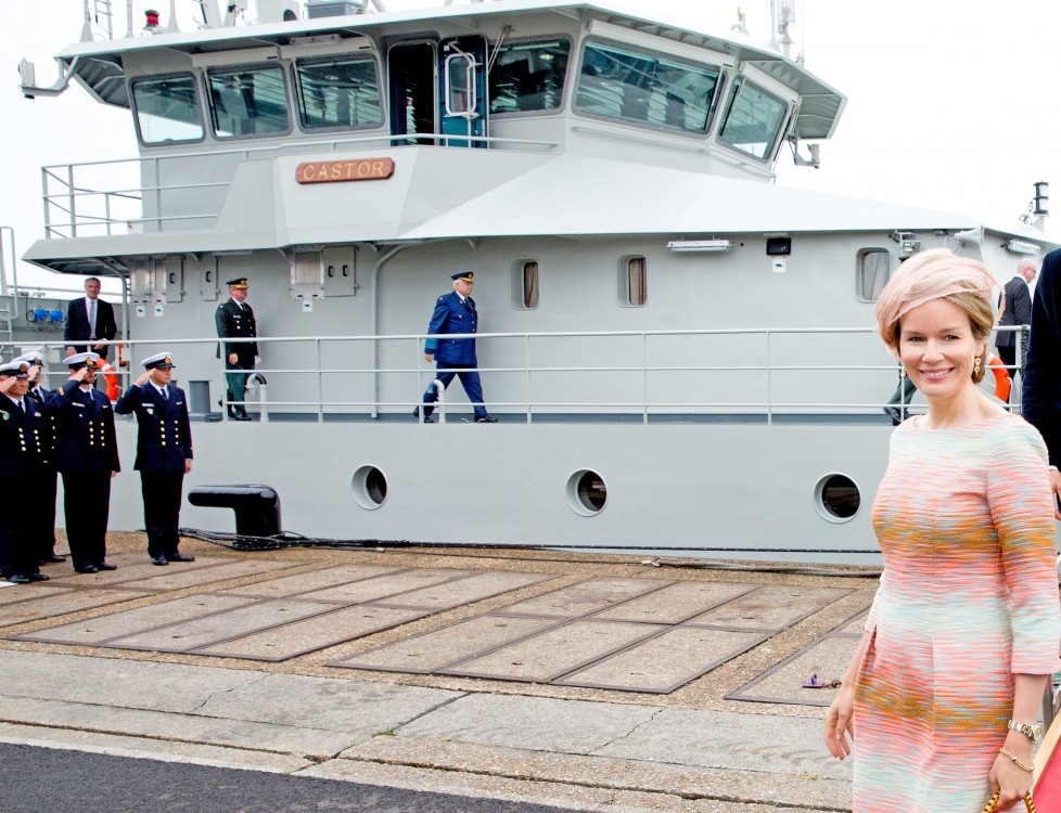 حضرت الملكة البلجيكية ماتيلدا، حفل إطلاق السفينة البلجيكية Belgian Navy patrol ship P901 Castor في القاعدة البحرية في Zeebrugge. وتألقت الملكة خلال الإحتفال بمظهر مشابه جدا لمظهرها التي ظهرت بها خلال زيارتها إلى السويد في شهر أبريل الماضي.