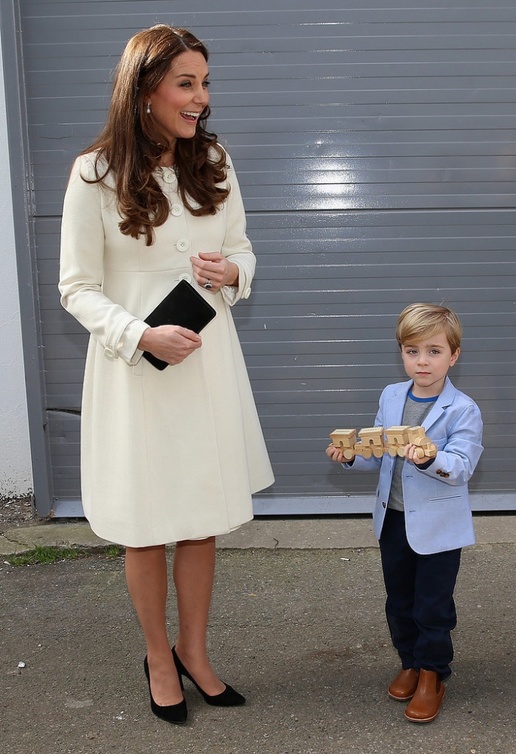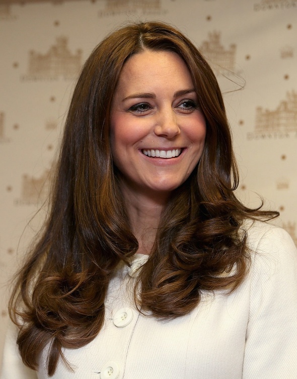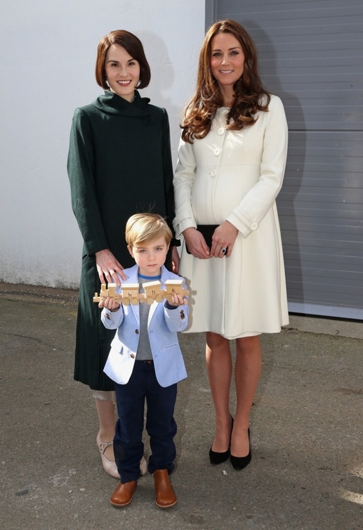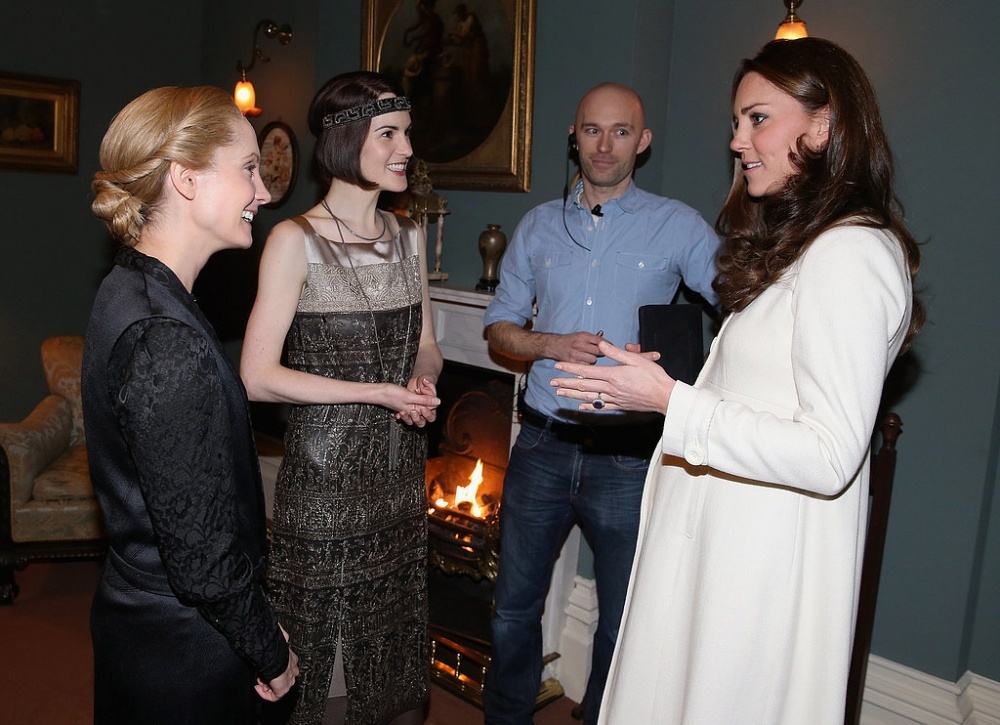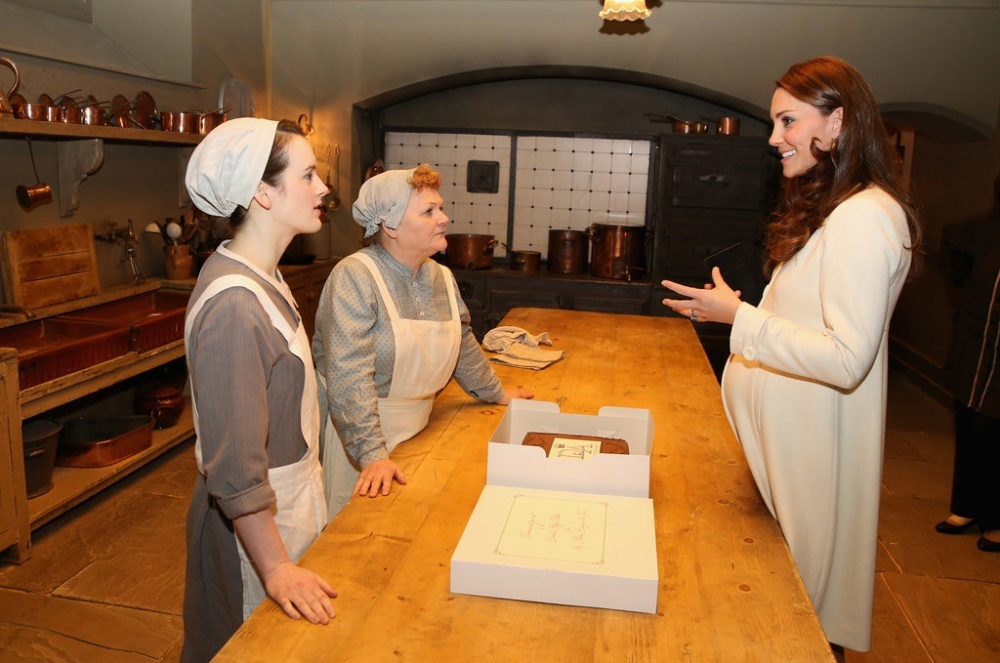 ذهبت كاثرين دوقة كمبردج إلى موقع تصوير المسلسل البريطاني الشهير " downtown abbey" في استديوهات " إيلينغ" (Ealing Studios) غرب مدينة لندن، وهناك قامت بتوجيه التحية لمعجبيها وقابلت فريق عمل المسلسل ومنهم جوليان فيلوز مؤلف المسلسل، جيم كارتر، روبرت جيمس كوليير وفيليس لوجان، كيت قابلت أيضا الطفل الصغير أوليفر باركر والذي يقوم بتمثيل دور "جورج" في المسلسل. أوليفر قام بإعطاء كيت قطار لعبة حتى تقوم بإعطائه لابنها الأمير جورج ولقد شكرته كيت على ذلك بابتسامة رقيقة، كيت كانت أنيقة وجميلة كعادتها أثناء هذه الزيارة حيث ارتدت معطفاً أنيقاً من "JoJo Maman Bébé" فوق ملابسها.