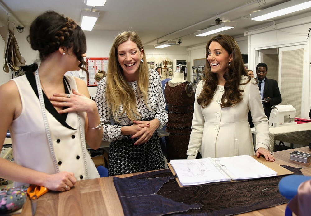 وارتدت كيت في هذه المناسبة فوق لابسها معطفا أزرقا أنيقا من تصميم ” Beulah London” وقامت برفع شعرها في تصفيفة أنيقة وارتدت قبعة زرقاء جميلة وقرط ماسي ذو لون أزرق جميل.