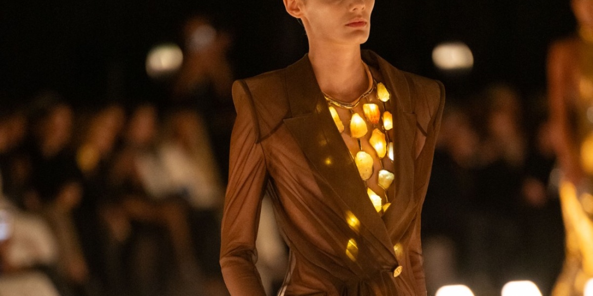 كشف دانيال روزبيري، المدير الإبداعي لدار "سكياباريلي" Schiaparelli، عن مجموعته لربيع وصيف 2026 للملابس الجاهزة، وهي مجموعة لا تسعى إلى الترفيه بقدر ما تسعى إلى الإلهام، مُستلهمة من رؤيته بأنّ اللحظة الحالية في الثقافة تتوق إلى شيء ذي قيمة دائمة. وقد عبّر روزبيري عن هذا التوجه من خلال اختياره لتقديم العرض في مركز "بومبيدو"، وتحديدًا في نفس القاعة التي استضافت معرض برانكوزي، مُشيرًا إلى أن "حضور عرض سكياباريلي يجب أن يشبه زيارة متحف: تجربة مُلهمة وطموحة ومُطمئنة بنفس القدر. يجب أن تُثير فيك شعور الرقص بمفردك في المنزل بعد العمل. يجب أن تُشعرك وكأنك ترقص في الظلام - بنفس القدر من التحرر والخصوصية والبهجة".