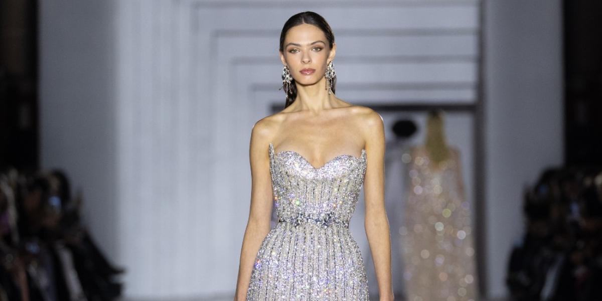 وسط الأجواء المعدنية الخام للقاعة، تدفقت التصاميم لتروي قصة الضوء في حالاته المختلفة، يتشقق، يتغير، ثم يعيد بناء نفسه على أجساد العارضات. برزت القصات المنحوتة التي تحاكي فن العمارة، حيث رأينا فساتين السهرة الأيقونية التصاميم "السترابلس" التي جمعت بين الدقة والجاذبية، مع تطريزات خطية من الخرز تلاعبت بمفهوم الشفافية والكثافة. من ناحية الأقمشة، لفتت الأنظار انسيابية الساتان و"الجازار" gazar التي لفت القوام بأسلوب "غير متماثل"، لتخلق أحجاماً درامية وكابات ناعمة توحي بالحركة المستمرة.