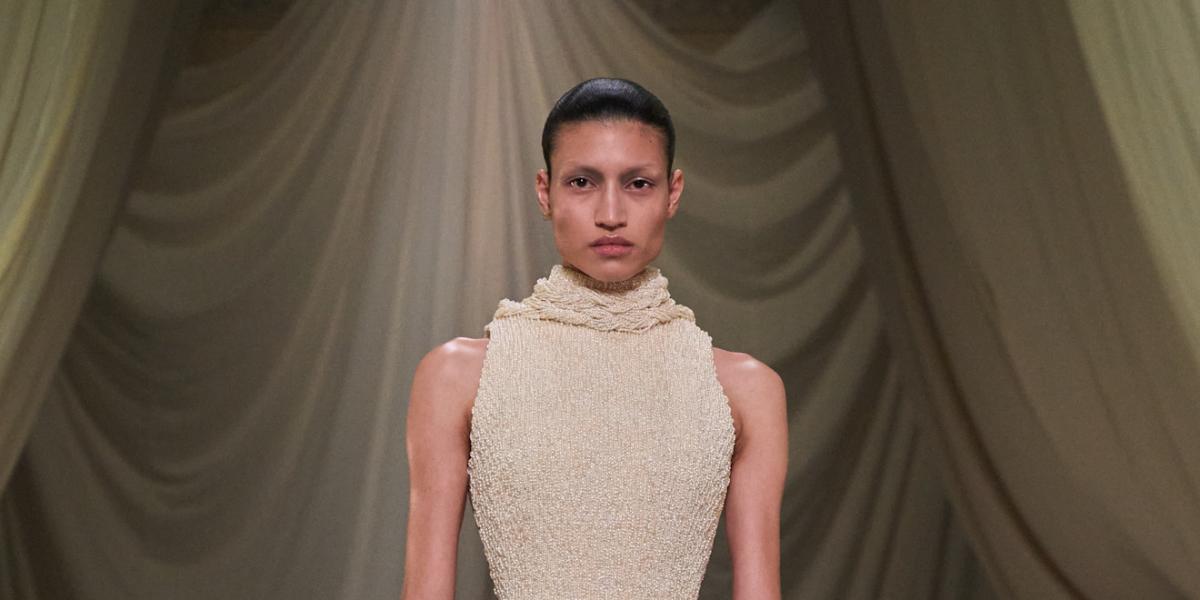 تدفع هذه المجموعة حدود الدار إلى مستوى جديد من حيث المادة، جبس وحجر وقصدير مُشكّل وجلد، وصور ظلية منحوتة بدقة تلامس العمارة. هذا التوسع يشير إلى ثقة واضحة واختبار واعٍ لهشاشة الأزياء الراقية عبر إدخال الوزن والكثافة والمقاومة.